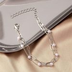 Cross-border hot 4mm imitation pearl chain metal square bracelet 2-piece women’s double-layer simple hand jewel