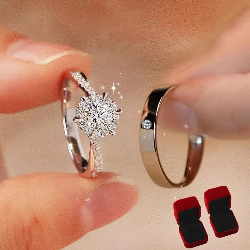 High-End Six-Claw Simulated Diamond Ring for Women, Simple and Fashionable Couple Style Moissanite Proposal